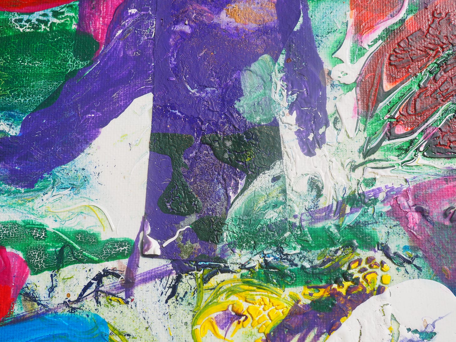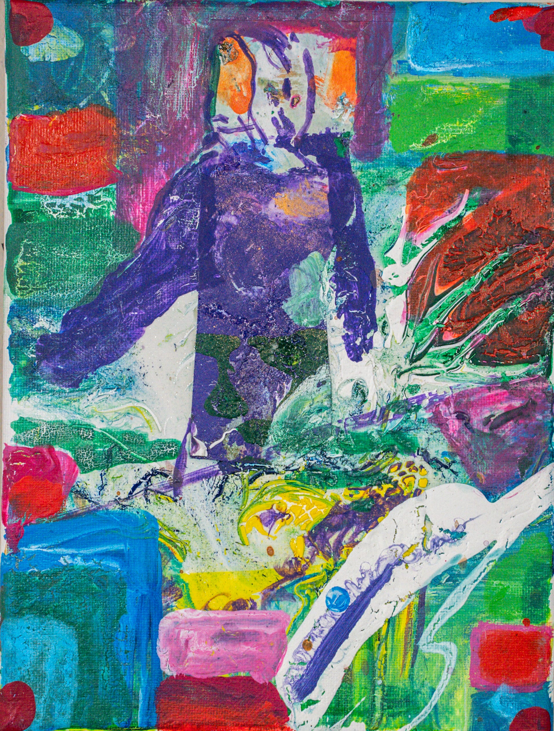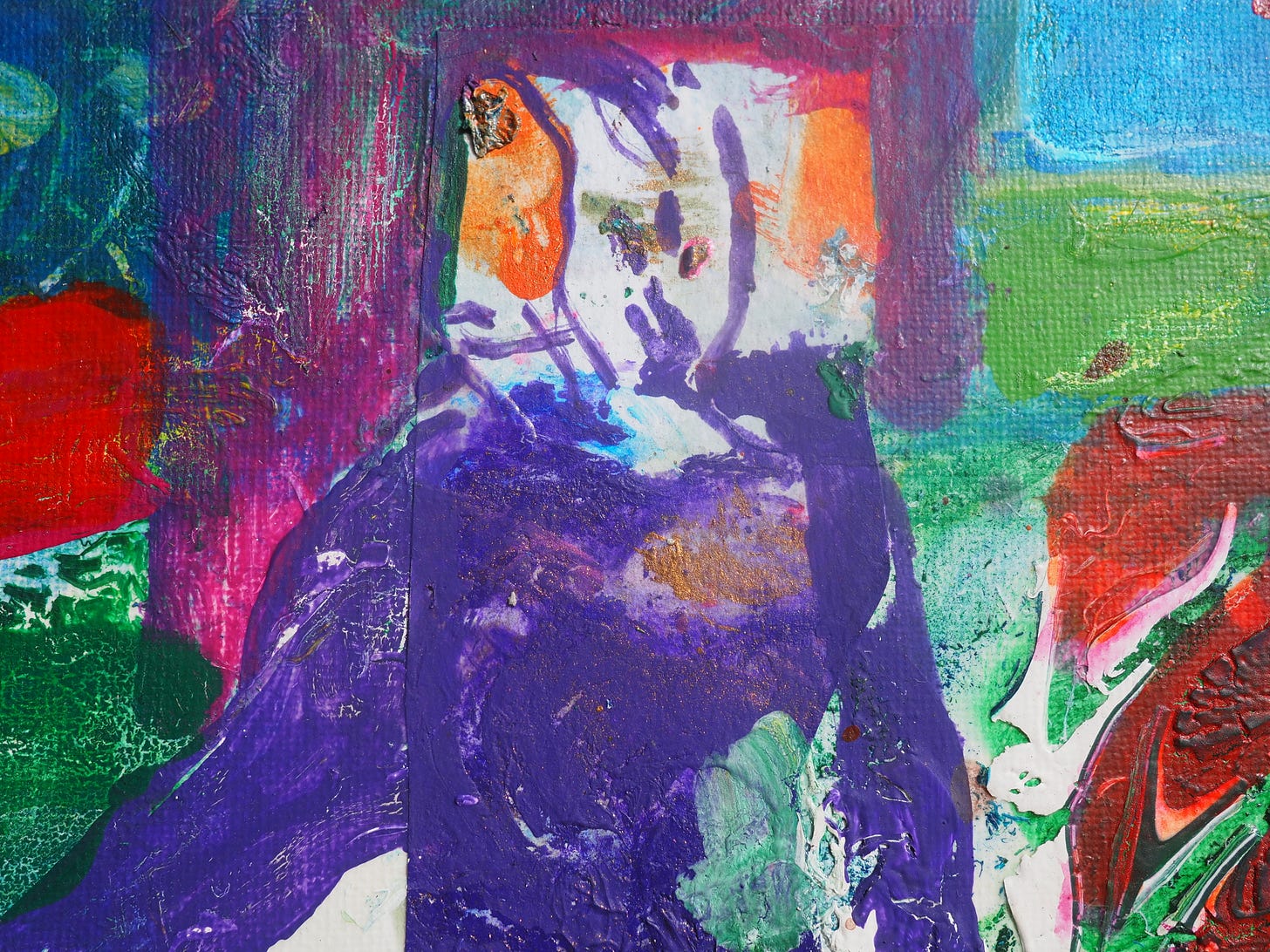 Transpersonal Making Team, Bel’s Garden Lab, acrylic and collage on canvas 2024, DC11-CT015 18cm x 24cm
