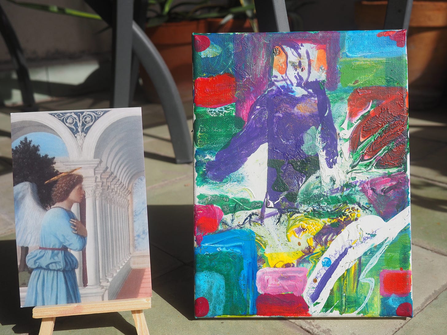 The painting next to the postcard (10.5 x 15 cm) of Polittico di Sant’Antonio (fragment) by Piero della Francesca in National Gallery of Umbria in Perugia