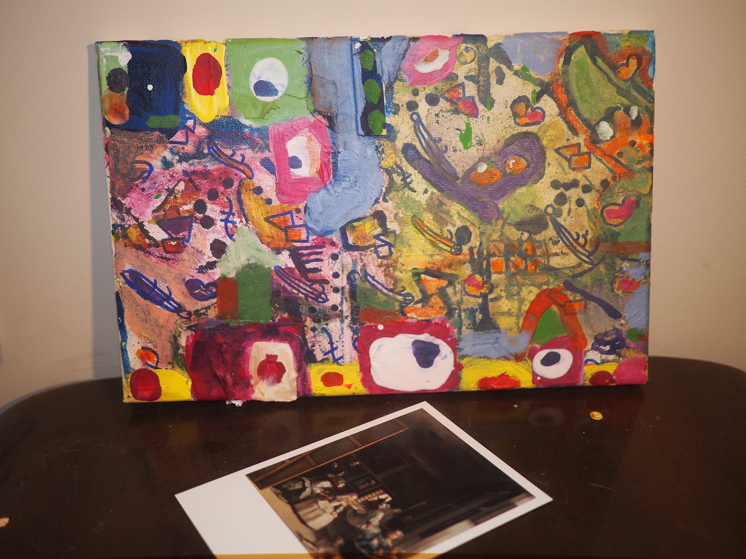 DreamCity TerrariumMay 03, 2025ShareTranspersonal Making Team, DreamCity Terrarium, acrylic on canvas, 2024 , DC-06 CT78, 20cm x 30 cmThe painting next to the postcard (10.5x15cm) of Las Meninas by Diego Velázquez