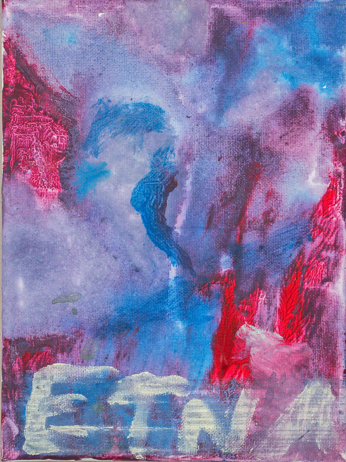 Etna Smoke Kiss, transpersonal making team, 2024, acrylic, oil, paper, textiles, ETNA-02 CT089, 18cm x 24cm