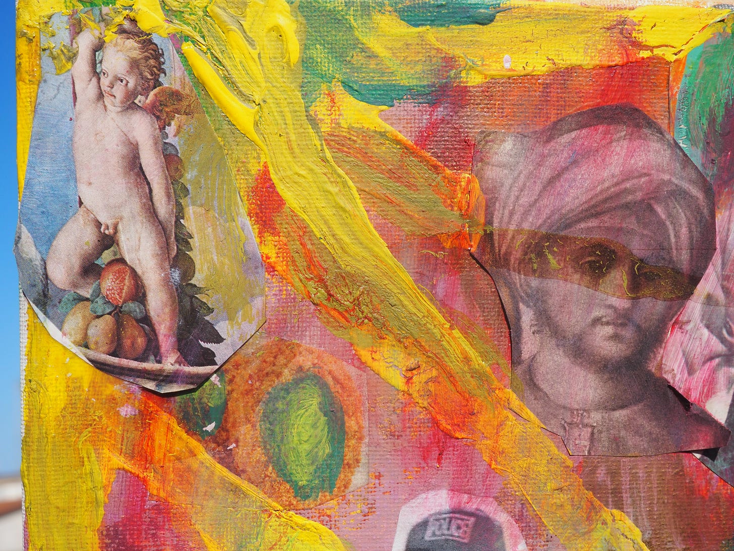 Giorgione's DaddyMay 03, 2025ShareTranspersonal Making Team, Giorgione’s Daddy, acrylic and collage on canvas, 2024, TSAG-03 CT84, 20 x 30 cm