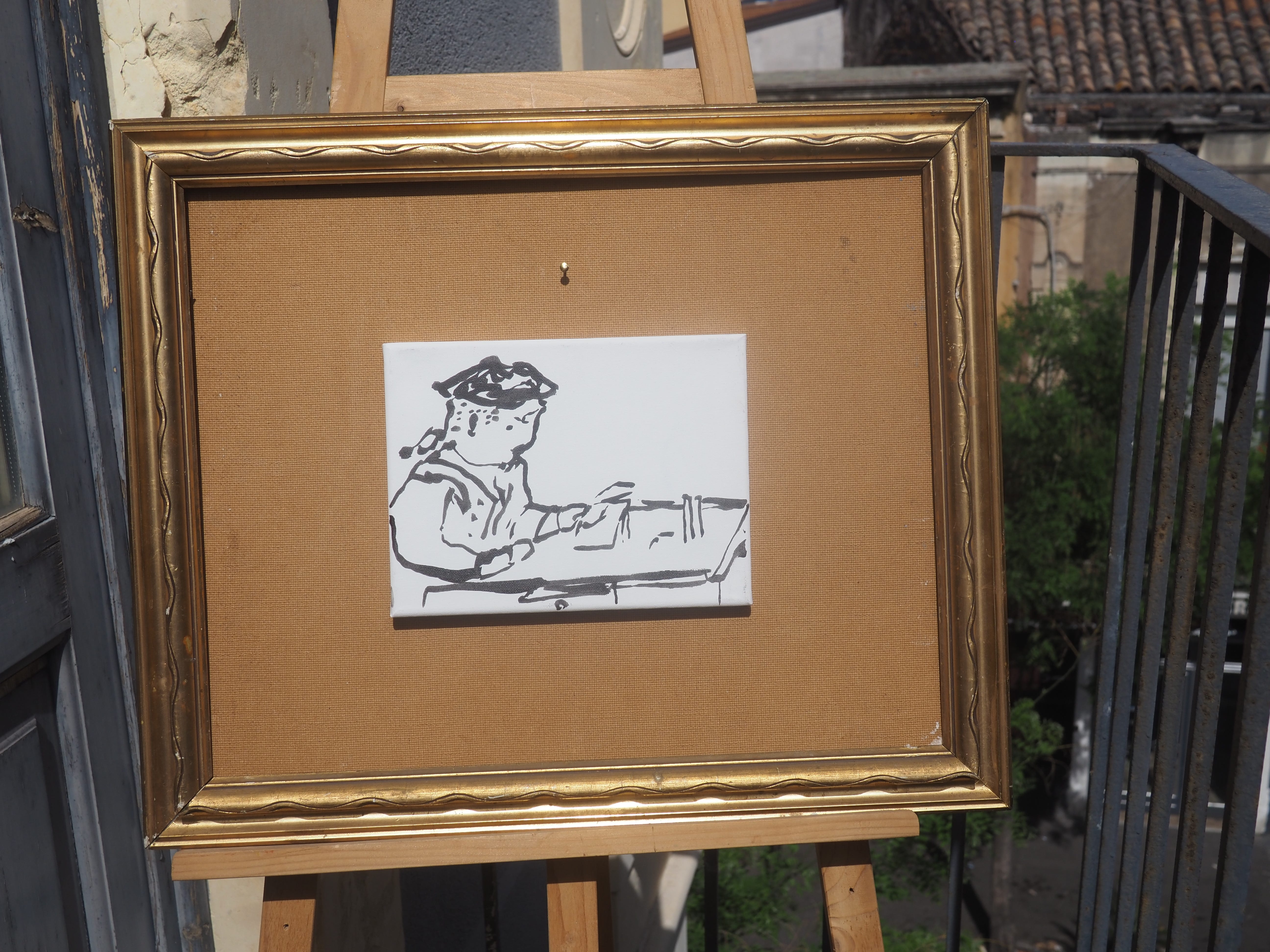 TMT’s Dopo series are transpersonal recreations of iconic and miraculous paintings. This painting is made after The House of Cards by Chardin, in strict “inner realism”