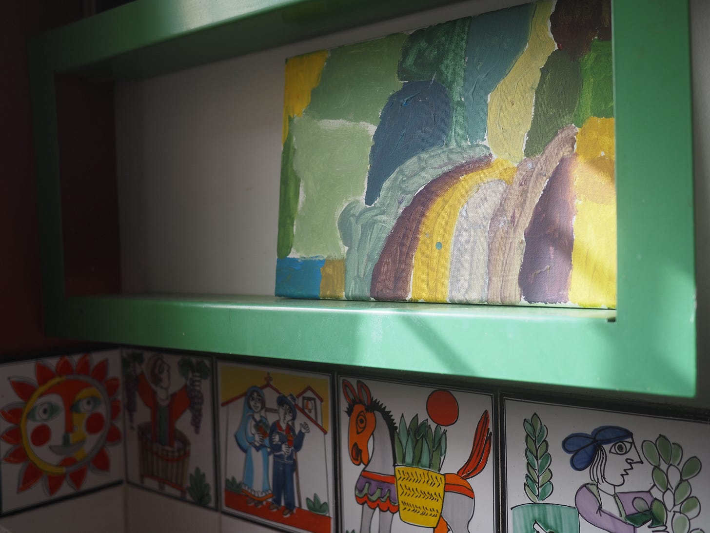 It will look great under natural light on your shelf, complimenting art that you’ve collected. (Here in the pictures are hand-painted tiles by the Sicilian ceramic artist Giovanni de Simone)