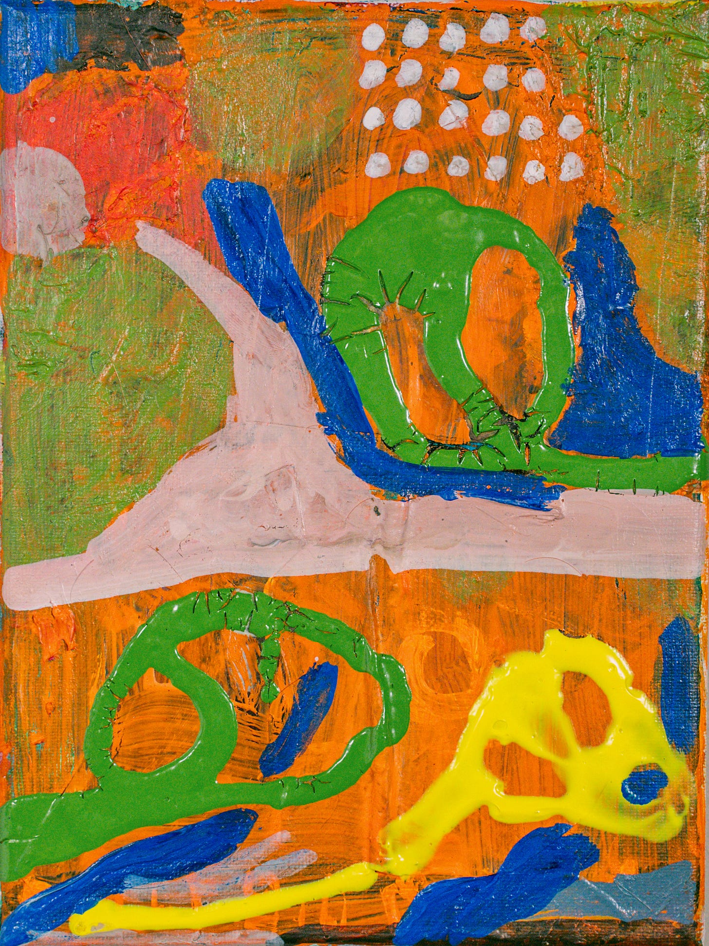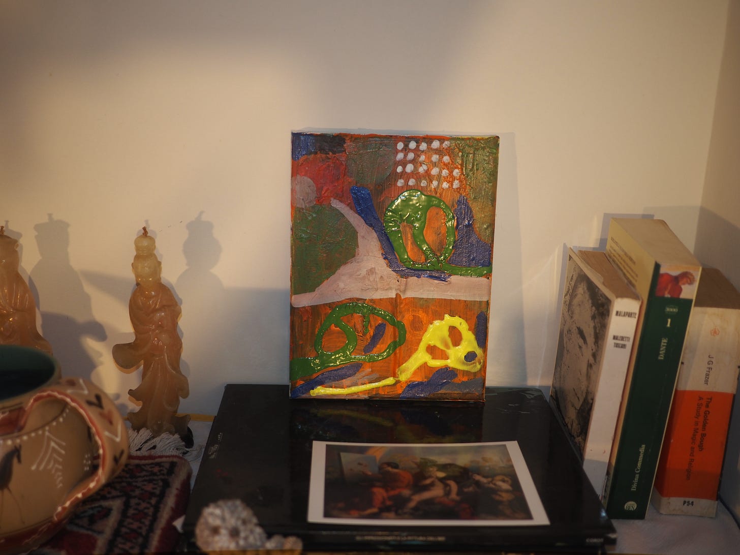 Leave Office, Transpersonal Making Team, 2024, acrylic and collage on canvas, CT100, 18cm x 25cm