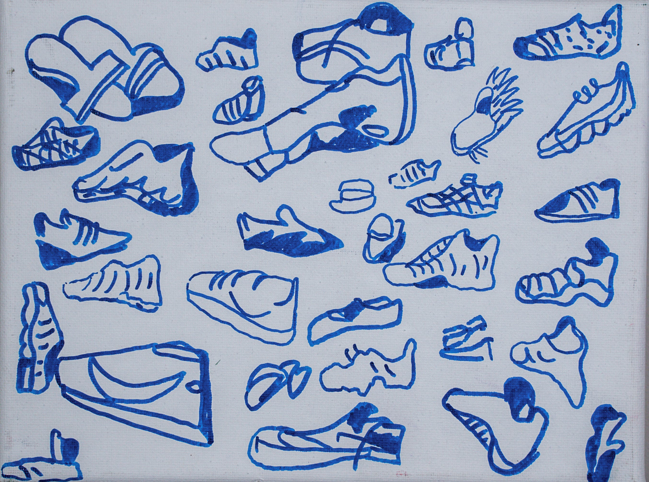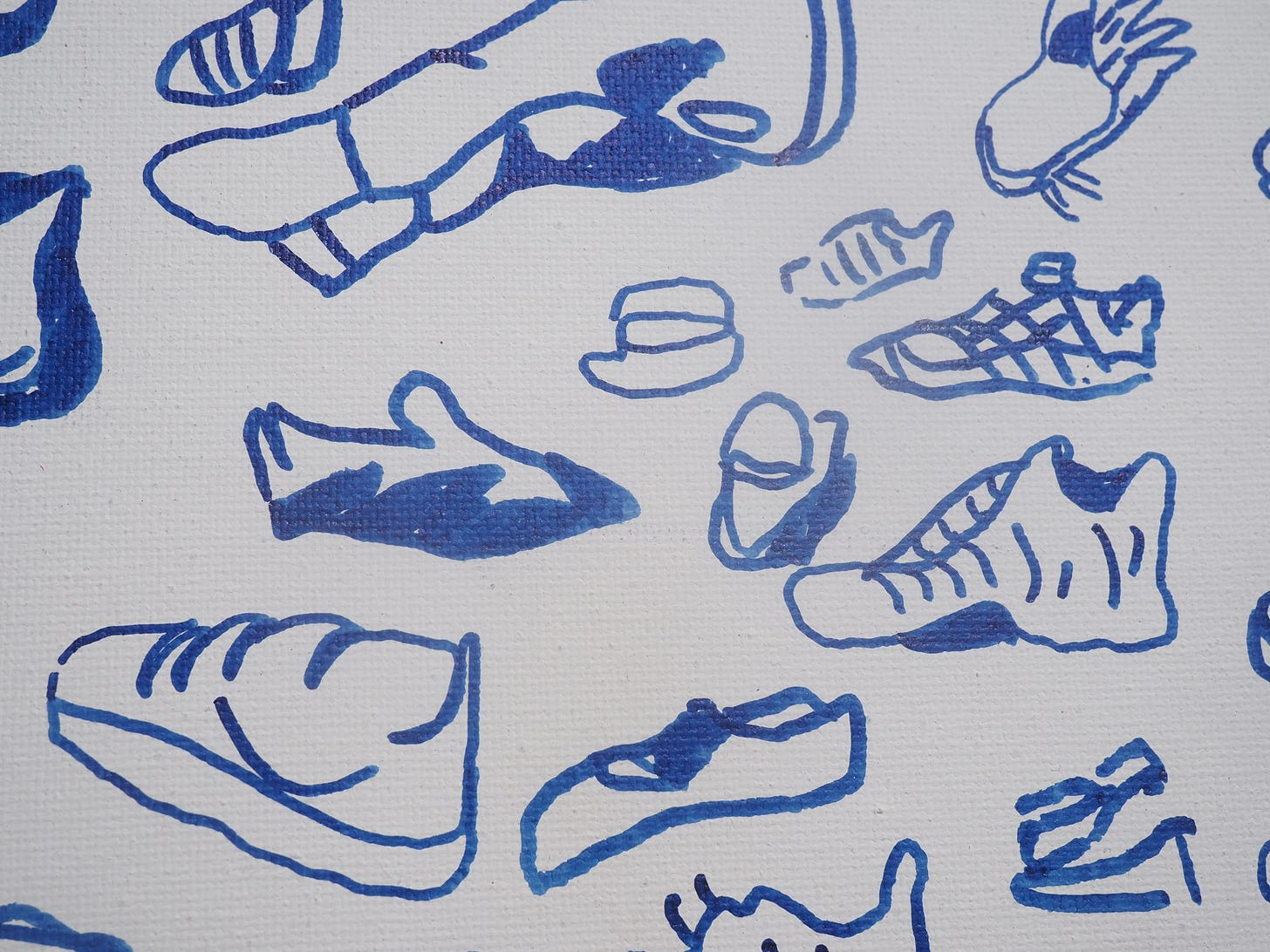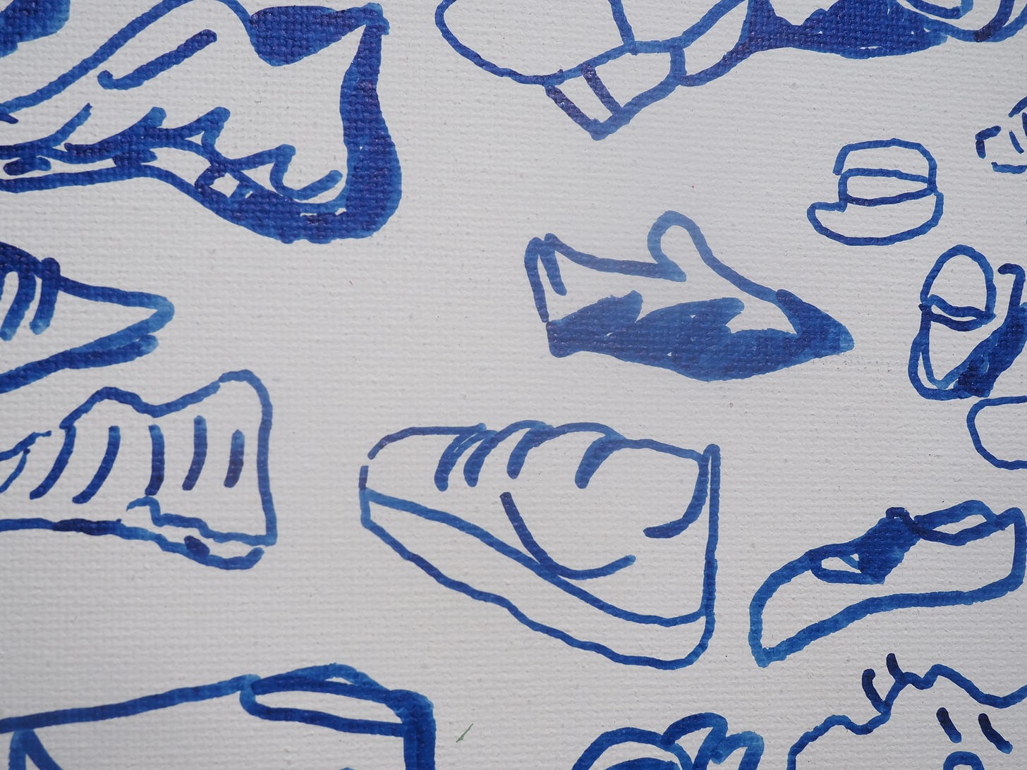 Sneakers in Blue and BlankMay 08, 2025ShareTranspersonal Making Team, Sneakers in Blue and Blank, marker on canvas 2024, MKT5-CT062, 24 x 18 cm