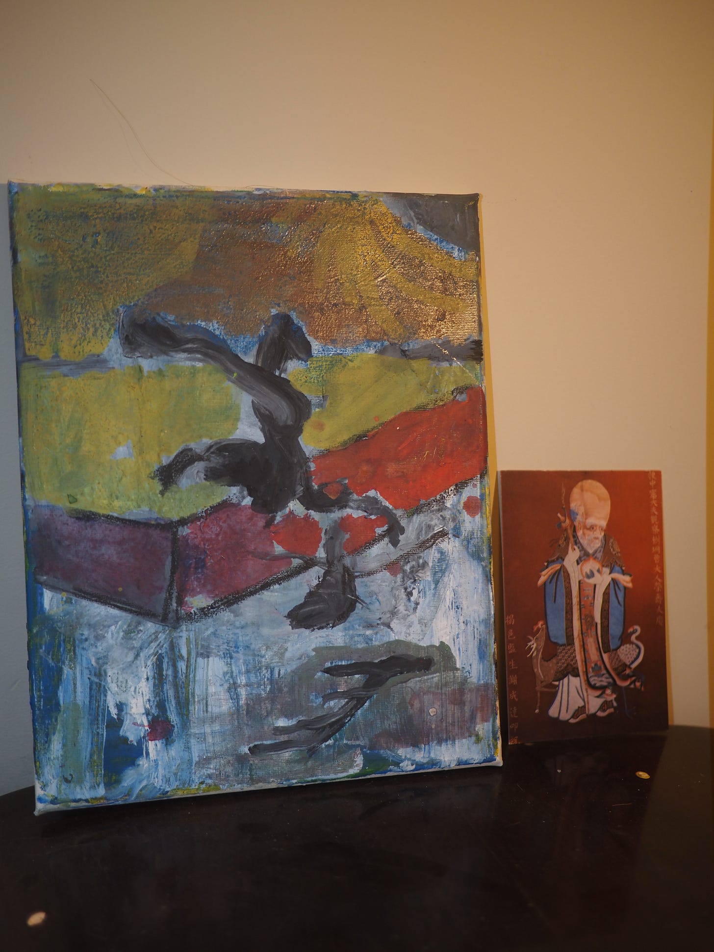 Outsider BlueMay 03, 2025ShareTranspersonal Making Team, Outsider Blue, acrylic, on canvas 2024, CT080, 25cm x 30 cmOutsider Blue next to the postcard (10.5 x 15 cm) of Shou-shing silk embroidery from Avila Museum of Oriental Art