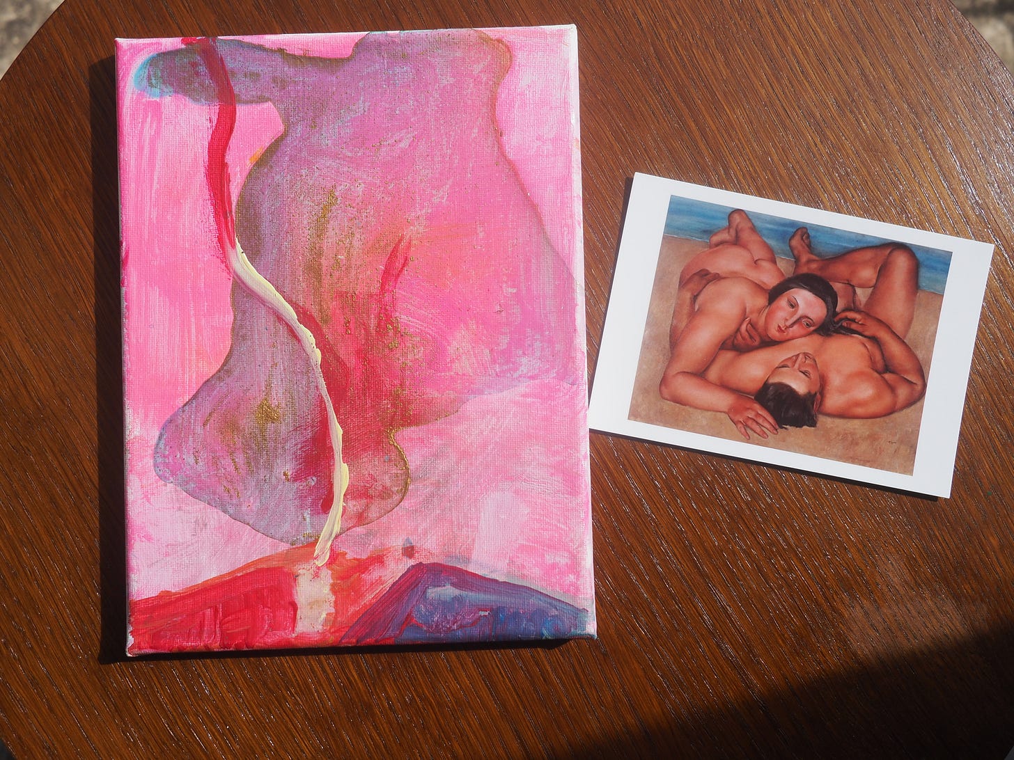 Slow Dance On EtnaLoaf_cozhengMay 05, 2025ShareTranspersonal Making Team, Slow Dance on Etna, acrylic on canvas 2024, ETNA04-CT001 18cm x 24 cmThe painting next to the postcard (10.5 x 15 cm) of a Josep de Togores Couple à la plage in Museum Reina Sofia in Madrid.