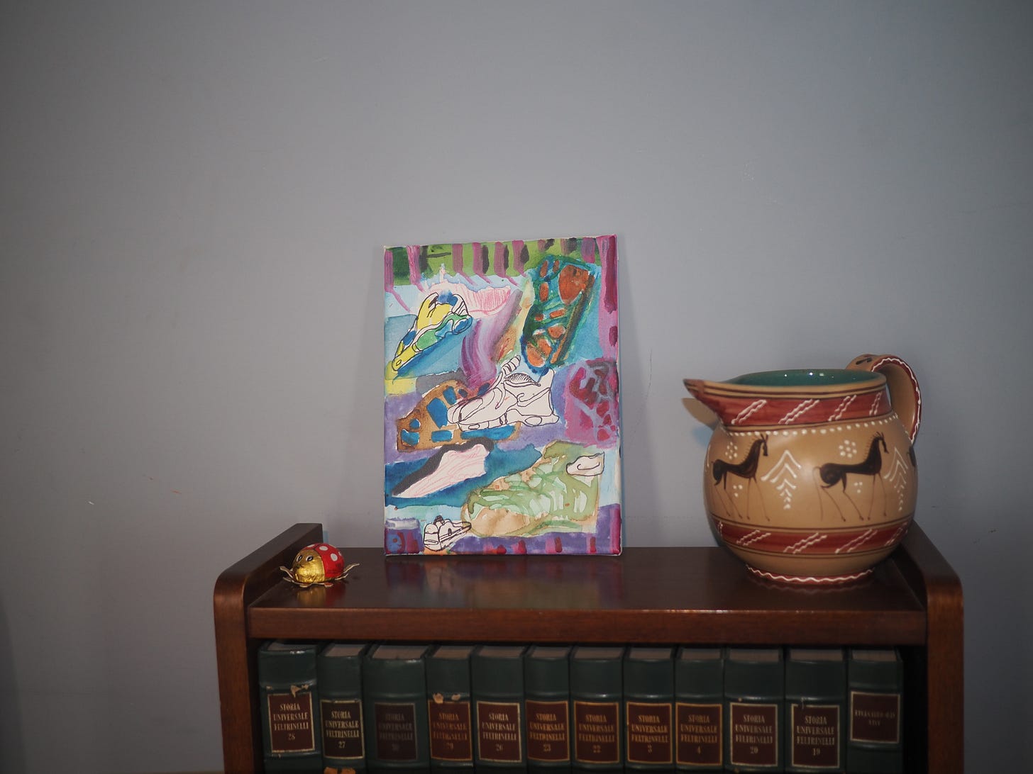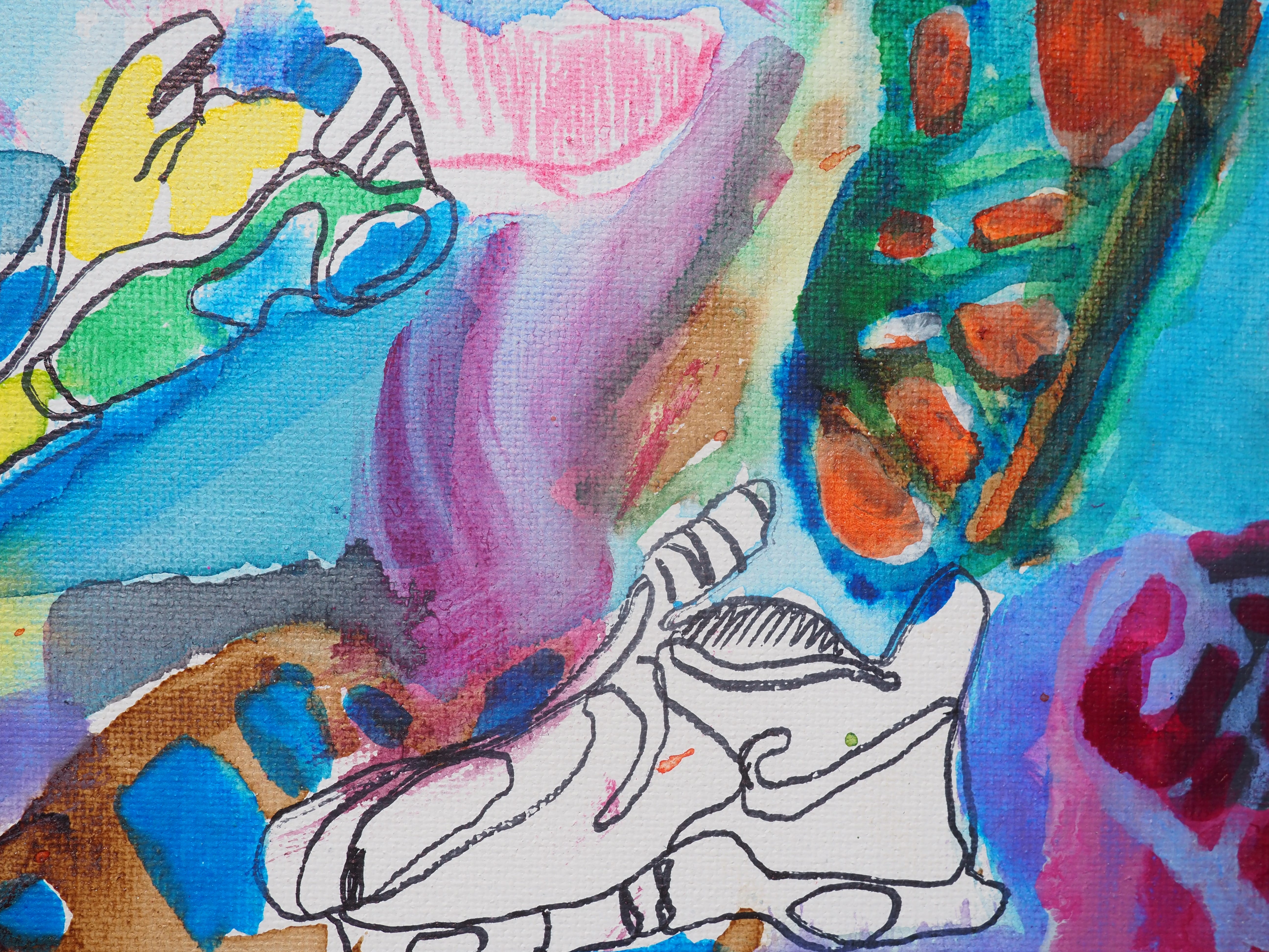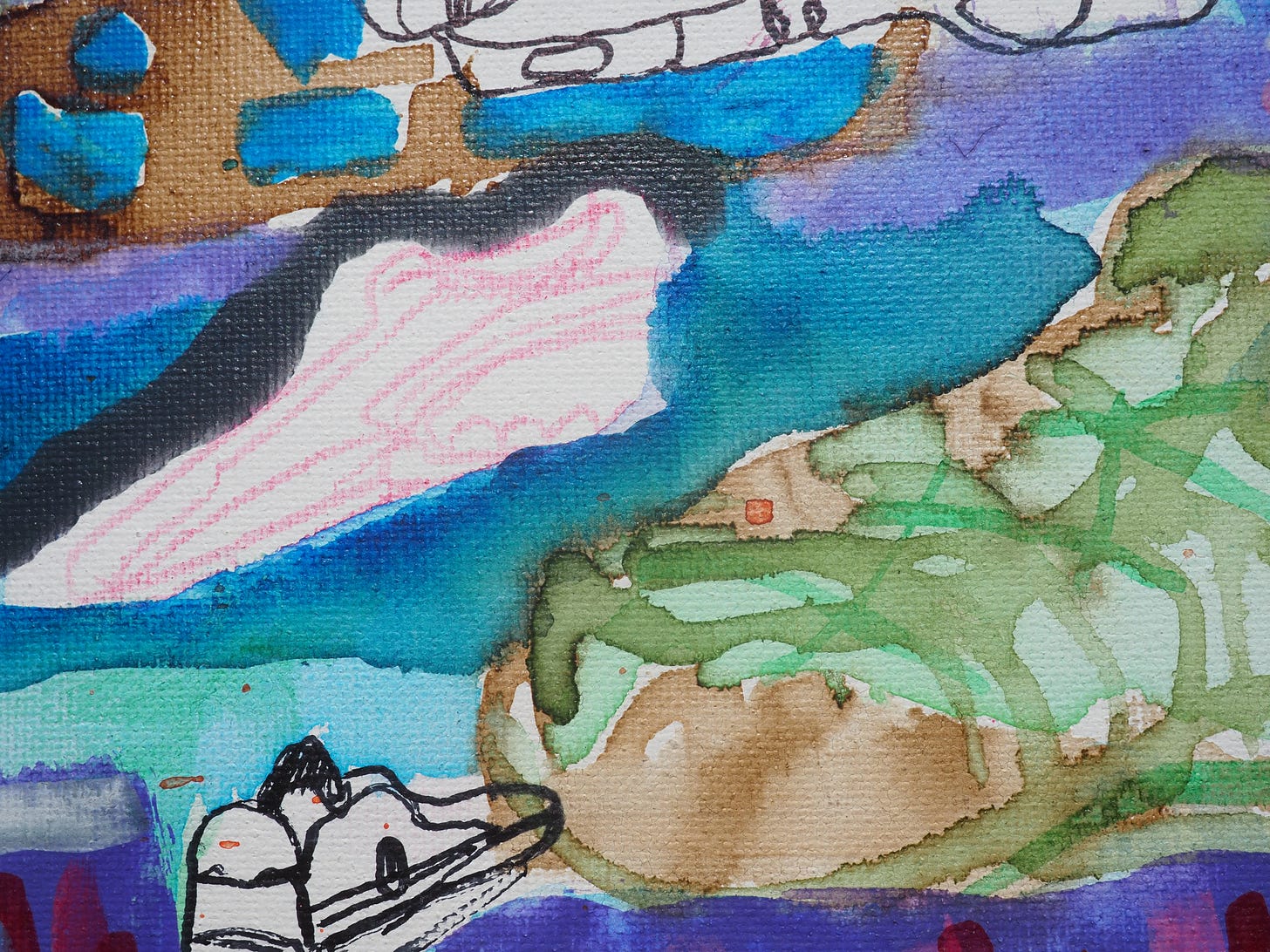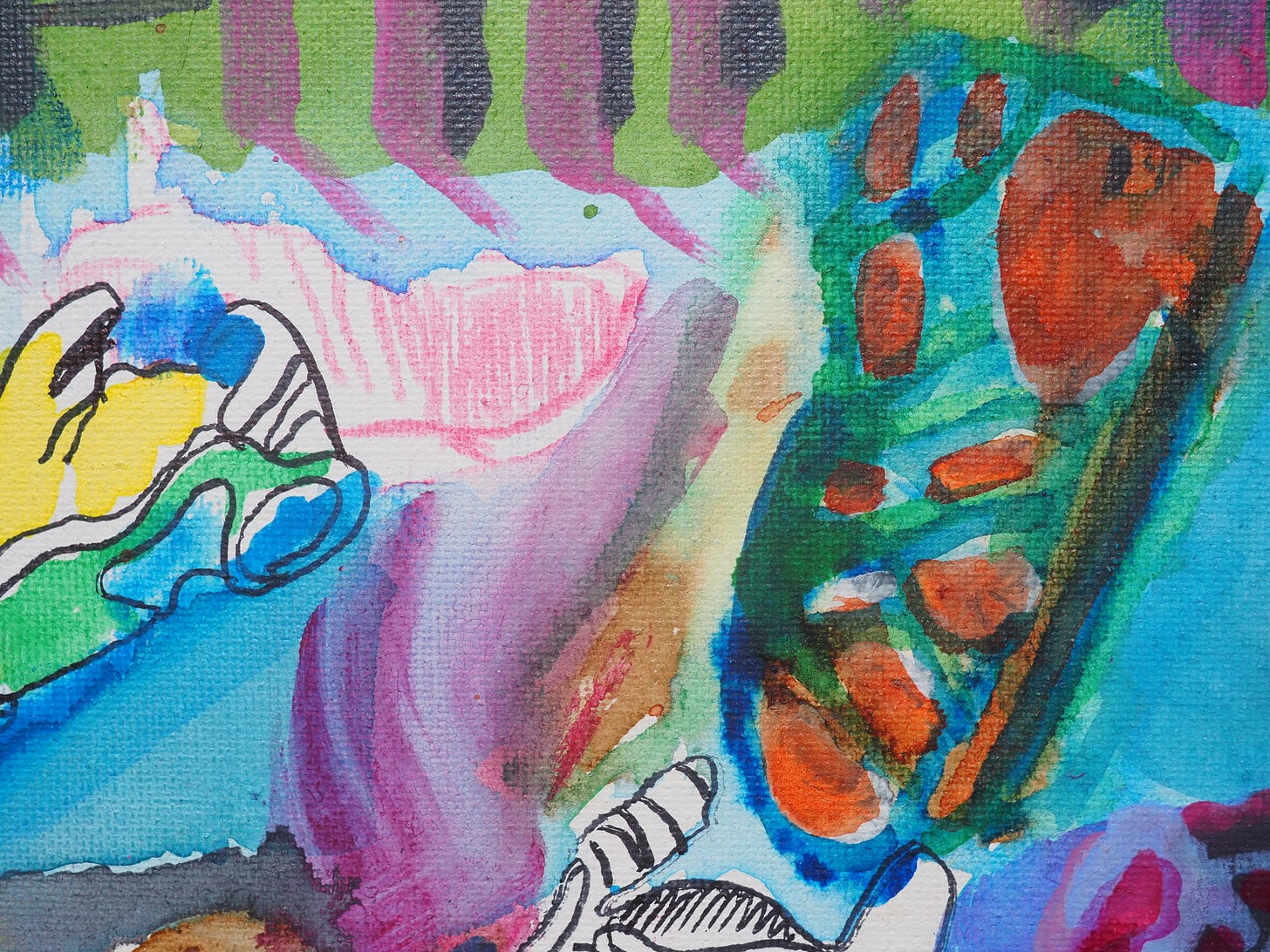Sneak Amuse-boucheMay 03, 2025ShareTranspersonal Making Team, Sneak Amuse-bouche, acrylic, marker and coffee on canvas, 2024, MKT01 CT083, 18 x 25 cm