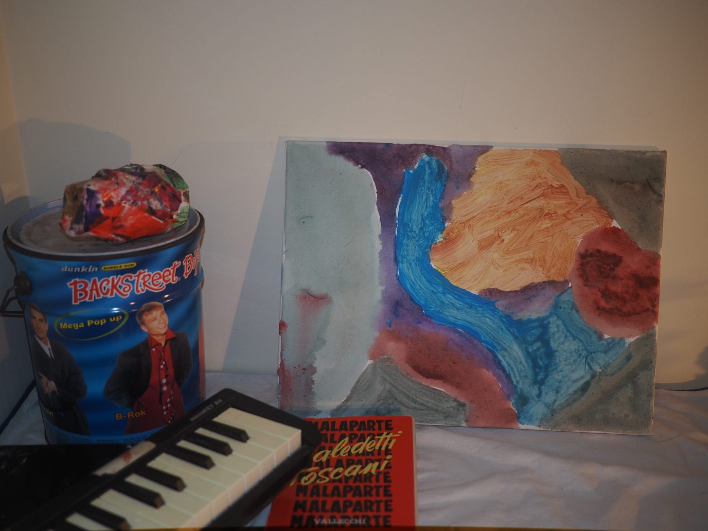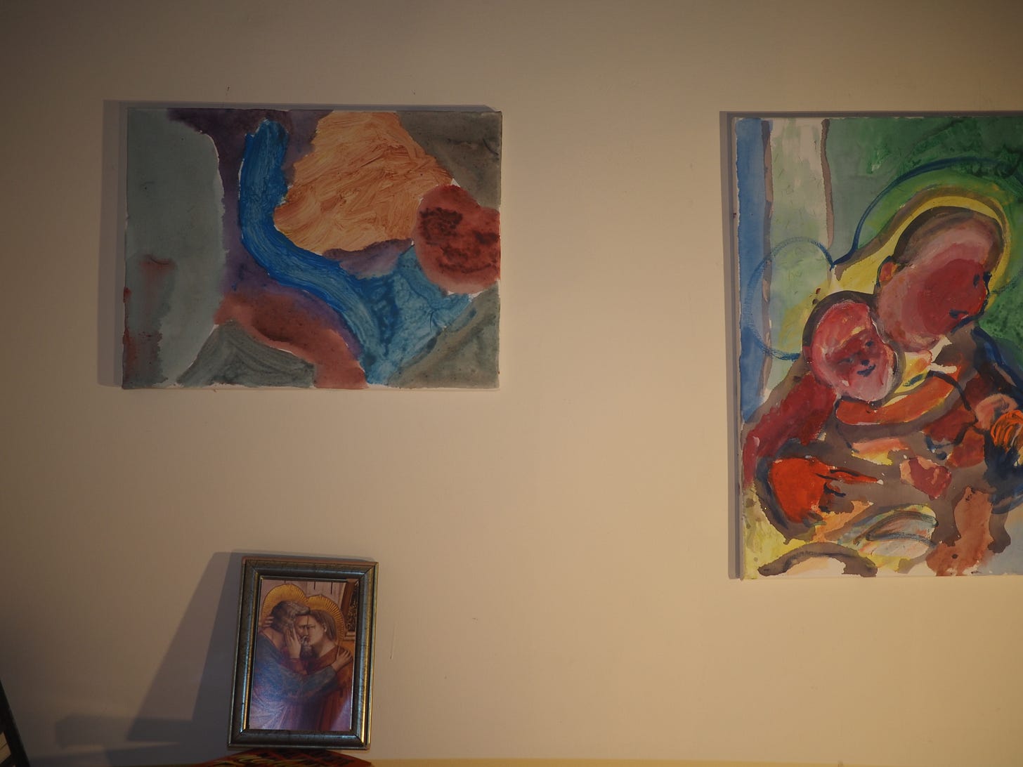 Obviously the best way to display this painting is hang it on the wall, in a room with elements that are compatible to the picture, such as another TMT painting (the painting to the right belongs to the series “Dopos”, they are paintings after the old masters.)