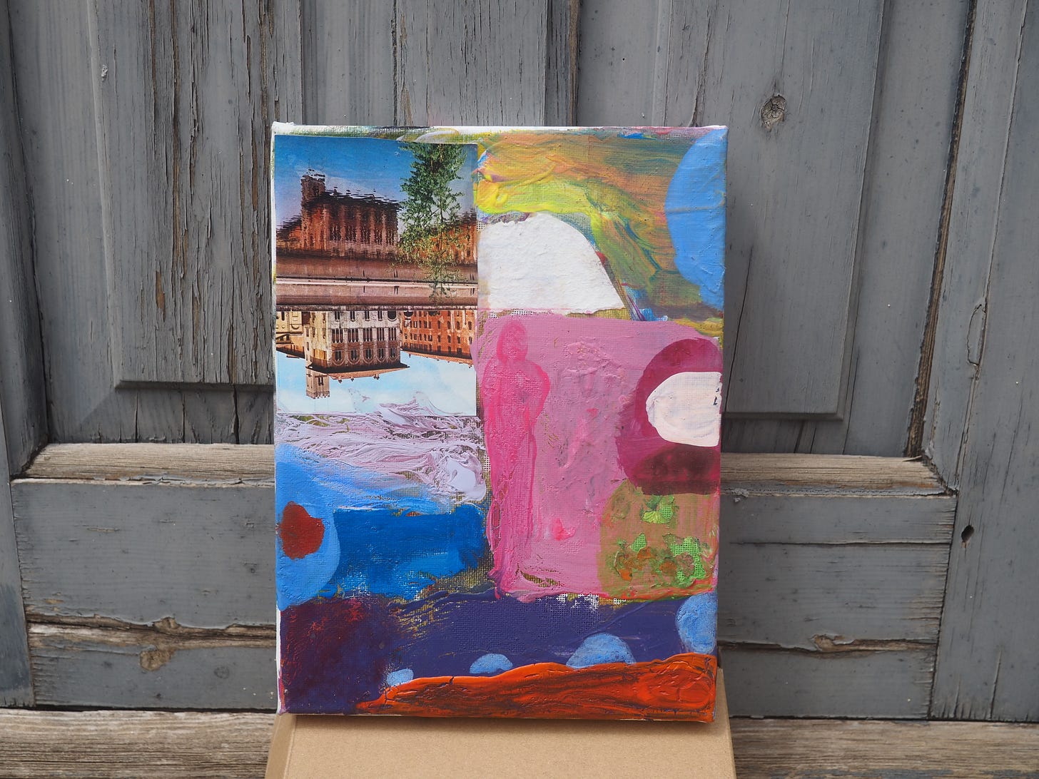 Tuscan RomanticistMay 06, 2025ShareTranspersonal Making Team, Tuscan Romanticist, acrylic and collage on canvas 2024, CT030, 18 x 24cm